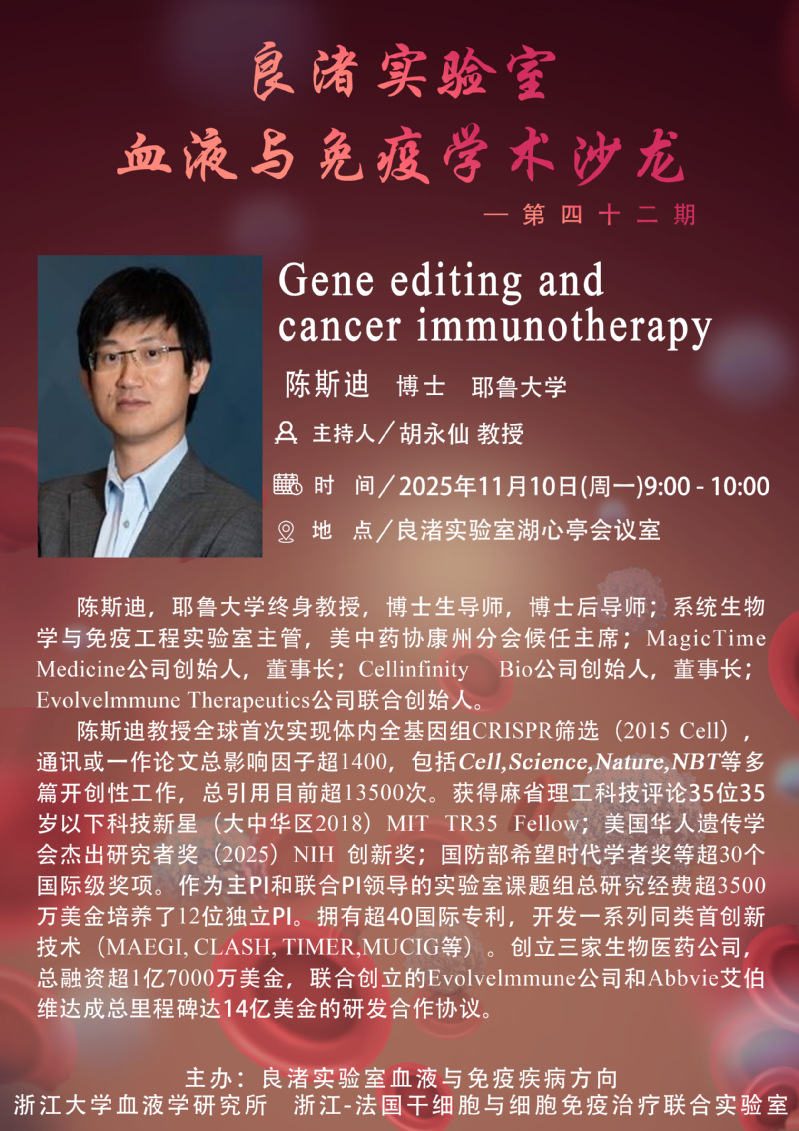 陈斯迪教授全球首次实现体内全基因组CRISPR筛选(2015 Cell),通讯或一作论文总影响因子超1400,包括Cell,Science,Nature,NBT等多篇开创性工作,总引用目前超13500次。获得麻省理工科技评论35位35岁以下科技新星(大中华区2018)MIT TR35 Fellow;美国华人遗传学会杰出研究者奖(2025)NIH 创新奖;国防部希望时代学者奖等超30个国际级奖项。作为主PI和联合PI领导的实验室课题组总研究经费超3500万美金培养了12位独立PI。拥有超40国际专利,开发一系列同类首创新技术(MAEGI, CLASH, TIMER,MUCIG等)。创立三家生物医药公司,总融资超1亿7000万美金,联合创立的Evolvelmmune公司和Abbvie艾伯维达成总里程碑达14亿美金的研发合作协议。